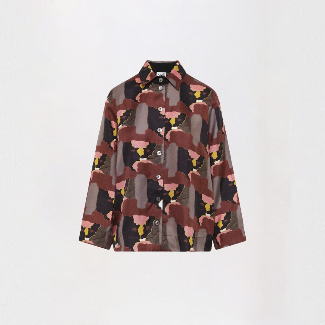 The Feeling the Space Silk Shirt is a statement piece that blends comfort with a contemporary print. Made from silk twill, it can be effortlessly paired with the matching silk pants or skirt for a coordinated look or worn as a standout piece with solid-colored items to complete a pared-back look.