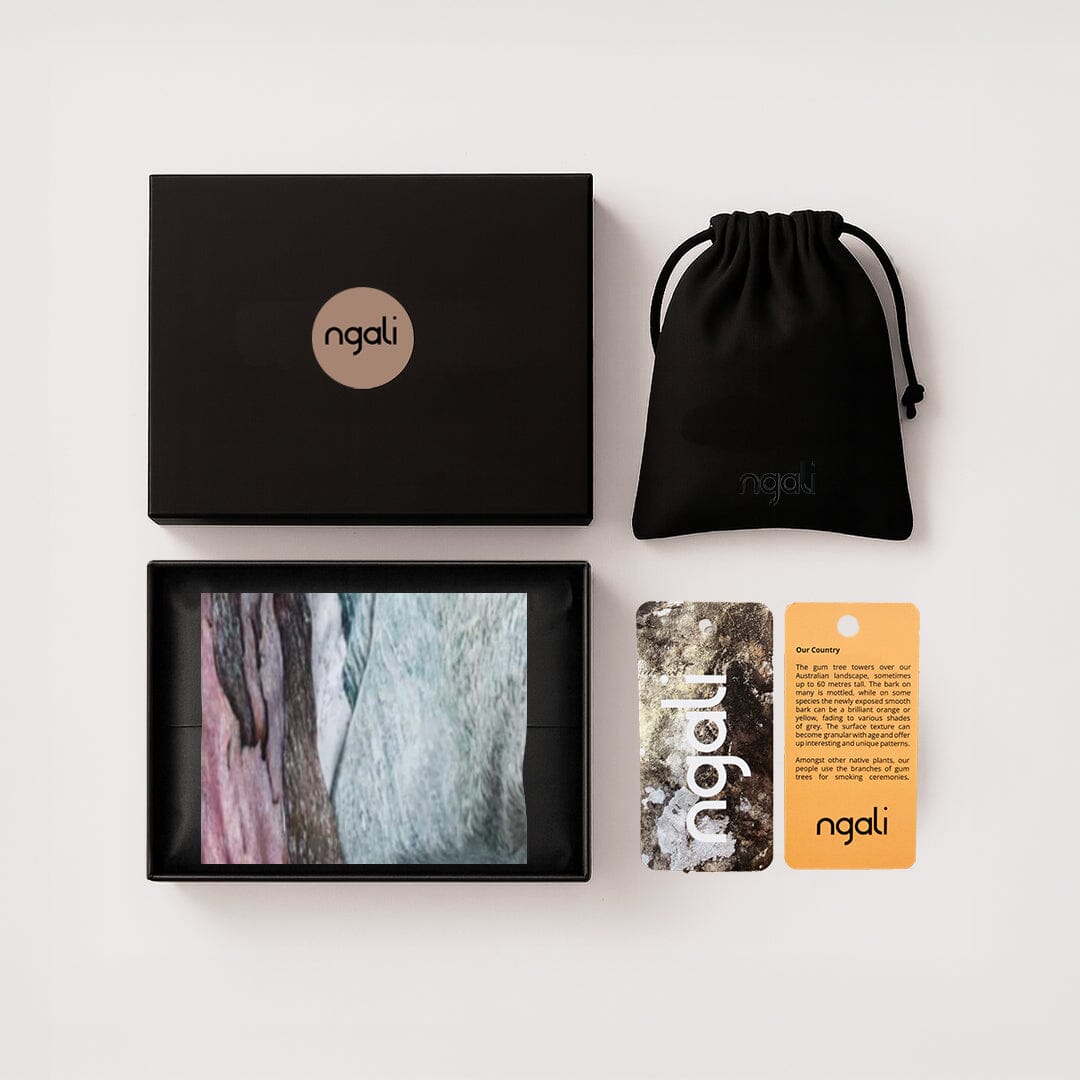 Inspired by Australia’s iconic gum trees, this double layer silk scarf reveals the stunning natural patterns shaped by rain, wind, and time. Each design reflects the quiet artistry of Country — the textures, markings, and colour shifts created by weather and light.