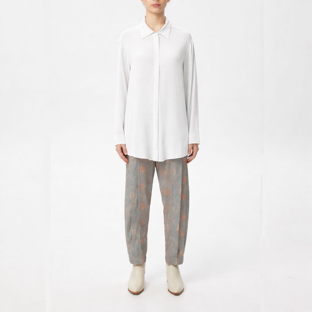 The White Long Sleeve Shirt brings effortless refinement to everyday dressing. Crafted from soft, breathable viscose, it drapes lightly over the body, creating a smooth, fluid silhouette designed for comfort and understated elegance.