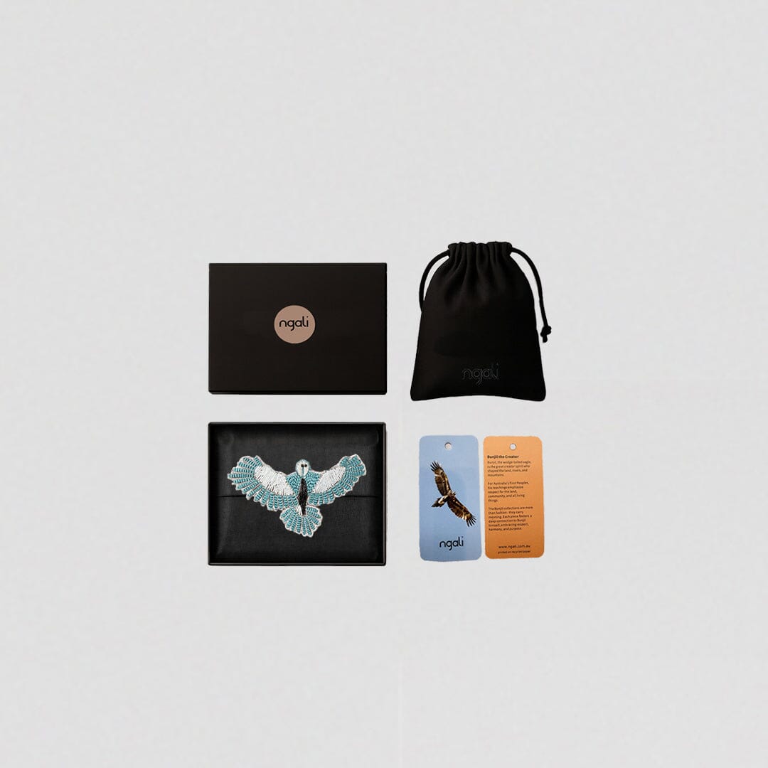 A gift that carries depth, beauty, and cultural significance. The Bunjil Embroidered Brooch represents Bunjil, the Creator Spirit for many of Australia’s First Peoples — a symbol of guidance, protection, and strength.