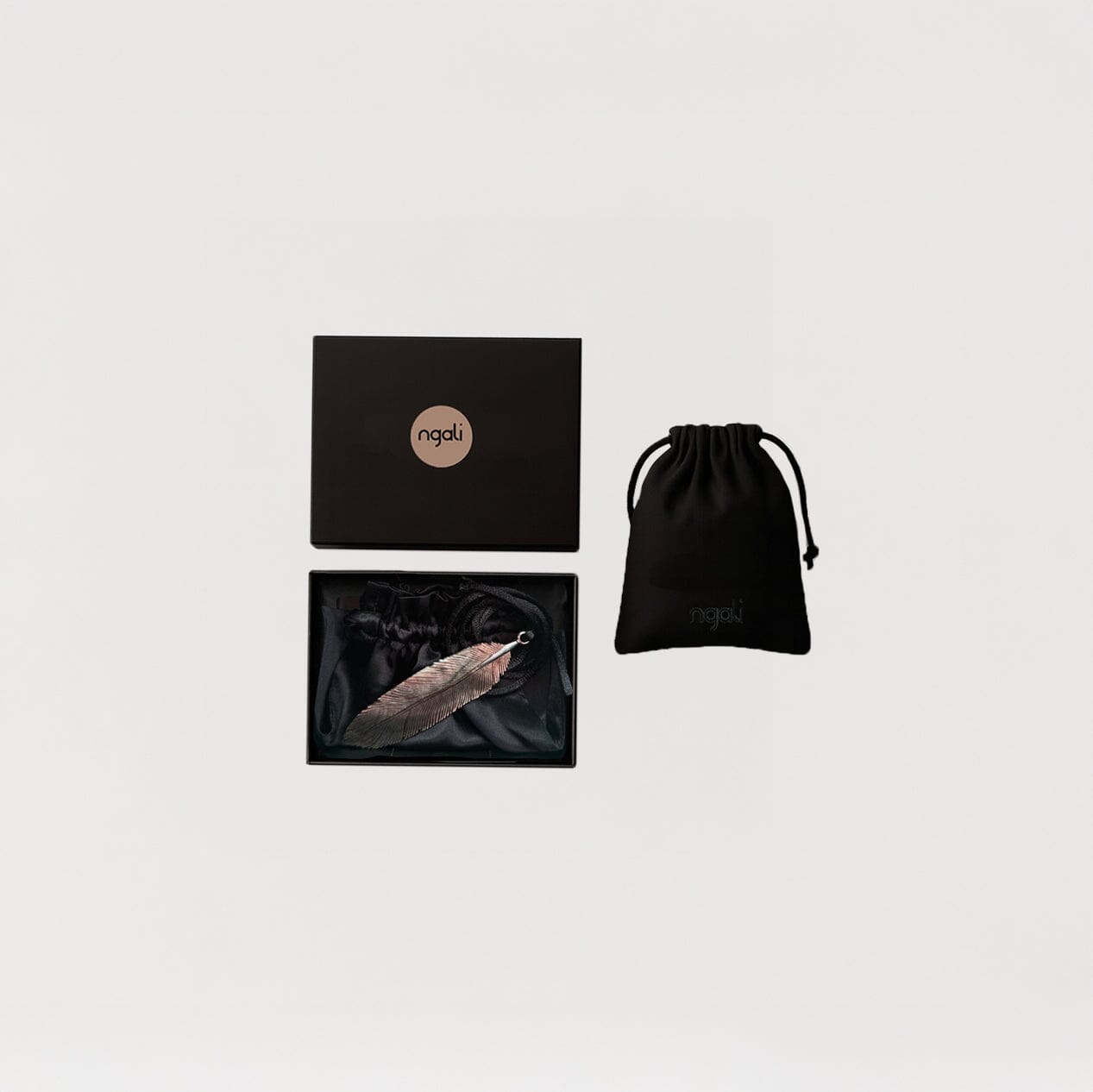 Our large feather pendant draws inspiration from the gentle form of the feather and pays quiet tribute to guidance, protection, and the spirit of Bunjil, the Wedged-Tailed Eagle.